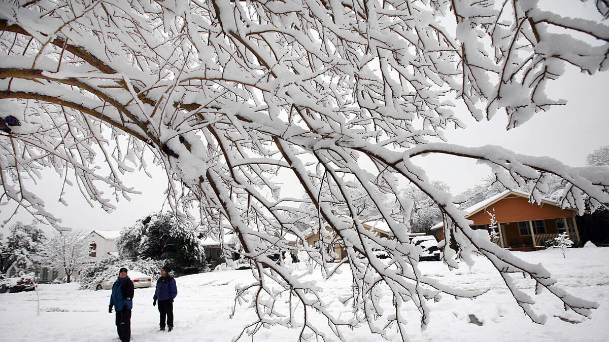 Husband-of-the-year Tom Cavins braved the winter weather, and the local news station spotted him to ask him what he was doing out in the snow storm. Well he “matter-of-factly” said he was headed to the store to get his wife corndogs.