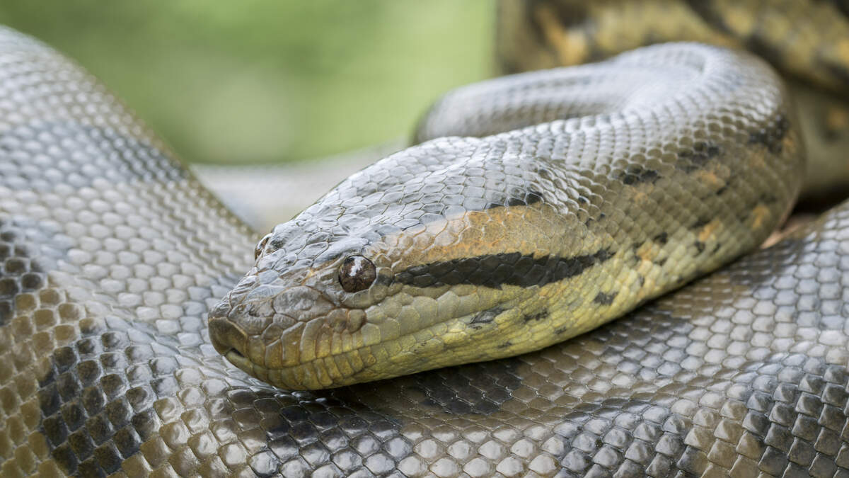 A giant green anaconda snake estimated at 16 1/2 ft long was filmed in the Brazilian jungle after it got stuck because it was so big from swallowing large prey whole! The Green Anaconda is one of the biggest and heaviest snake species on the entire planet.